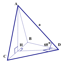 , AD hợp với (BCD) một góc $60^{\circ}$ suy ra $\widehat{ADH}=60^{\circ}$.