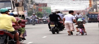20. Theo Luật giao thông, những người trong hình trên đã vi phạm lỗi gì?