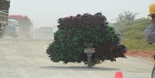 19. Theo Luật giao thông, căn cứ vào đâu để xác định người đi xe máy trong hình trên vi phạm lỗi mang vác vật cồng kềnh?