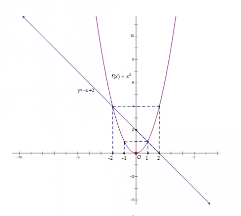 Ta có đồ thị 2 hàm số trên trục tọa độ