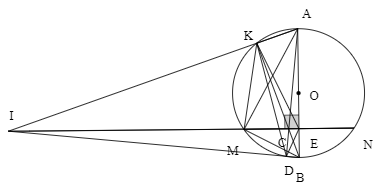 Câu 4(4,5 điểm): Cho đường tròn (O;R), dây MN cố định (MN < 2R). Kẻ đường kính AB vuông góc với dây MN tại E. Lấy điểm C thuộc dây MN (C khác M, N, E), BC cắt đường tròn (O) tại điểm K (K khác B).