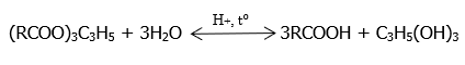 Chất béo có dang: (RCOO)3C3H5 bị thủy phân trong môi trường axit có phản ứng: