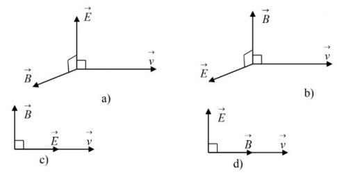 , cảm ứng từ $\vec{B}$ và tốc độ truyền sóng $\vec{v}$ của một sóng điện từ