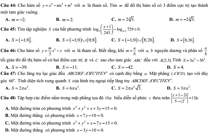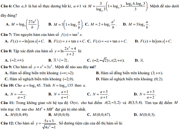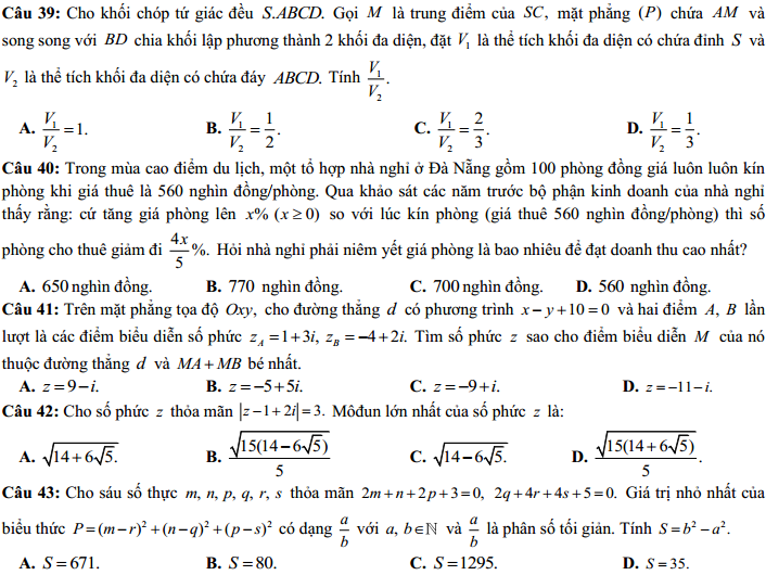 - Thi THPTQG 2020: Đề thi và đáp án môn Toán mã đề 106