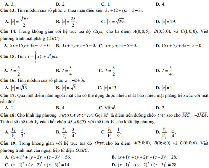 - Thi THPTQG 2020: Đề thi và đáp án môn Toán mã đề 114