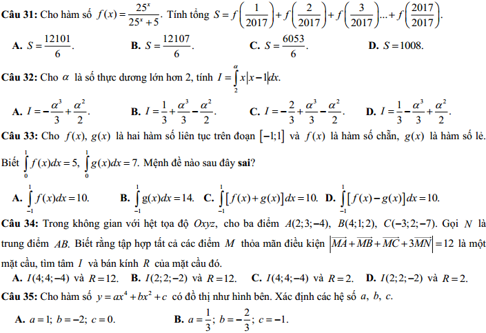 Câu 31: Cho hàm số