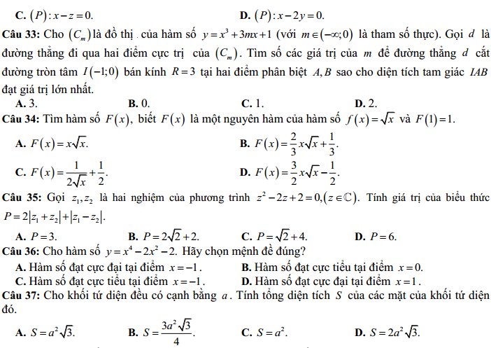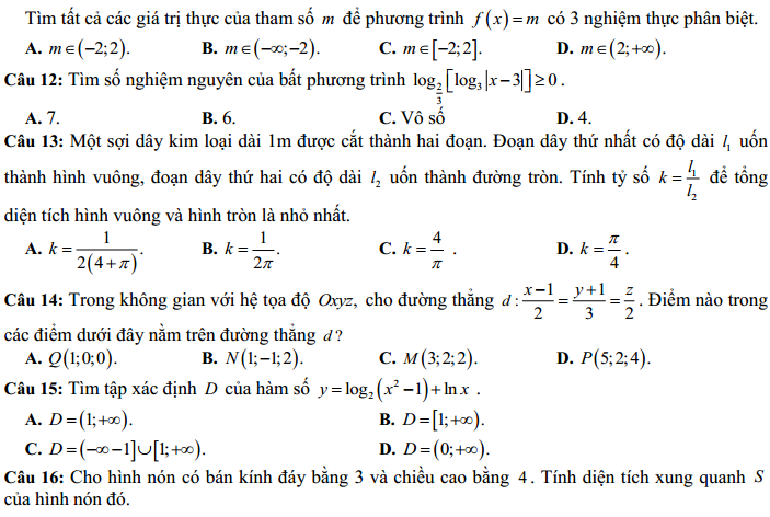 Đề thi này khá hay với các kiến thức bám sát chương trình học lớp 12.