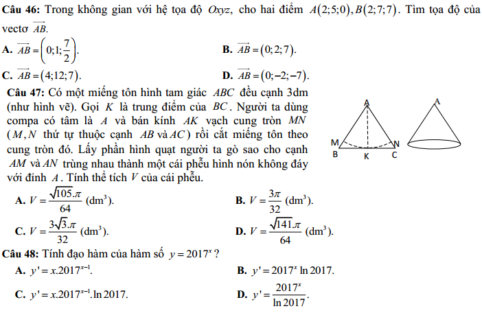 - Đề và đáp án môn Toán mã đề 104 thi THPT quốc gia năm 2017 đáp án của bộ GD-ĐT