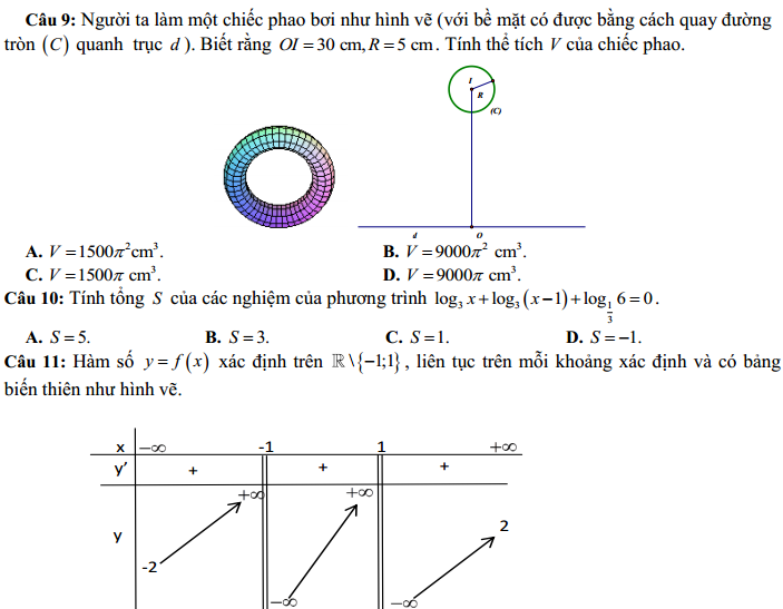 Câu 9: Người ta làm một chiếc phao bơi như hình vẽ (với bề mặt có được bằng cách quay đường tròn (C) quanh trục d). Biết rằng