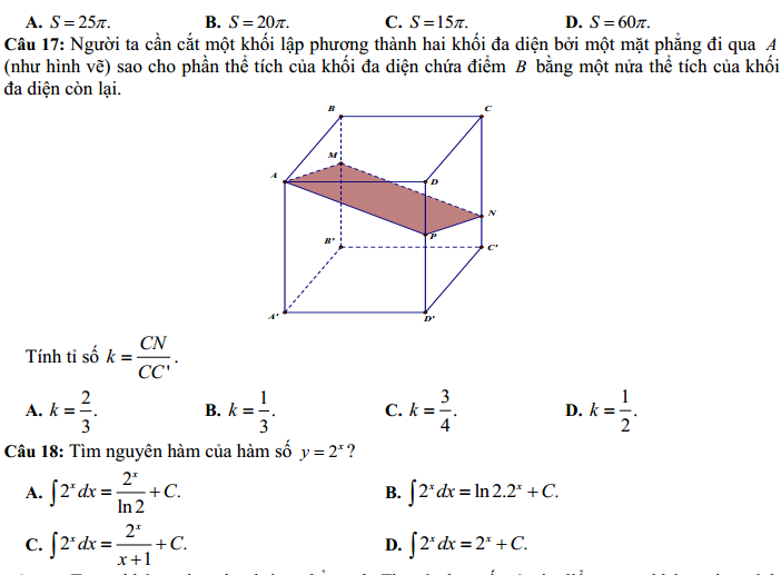 - Đề và đáp án môn Toán mã đề 118 thi THPT quốc gia năm 2017 đáp án của bộ GD-ĐT