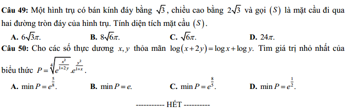 Câu 50: Cho số thực dương x, y thỏa mãn