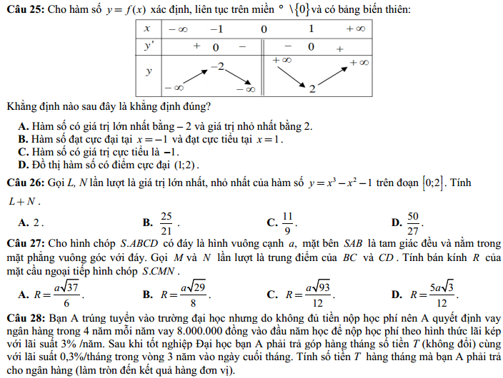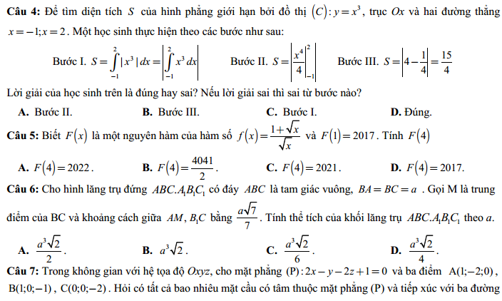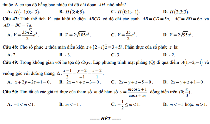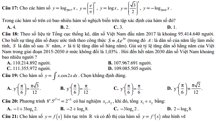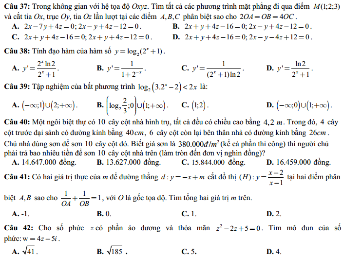 - Thi THPTQG 2020: Đề thi và đáp án môn Toán mã đề 121