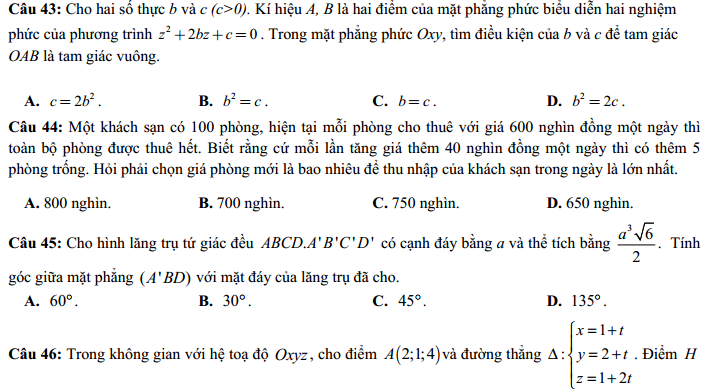 - Thi THPTQG 2020: Đề thi và đáp án môn Toán mã đề 102