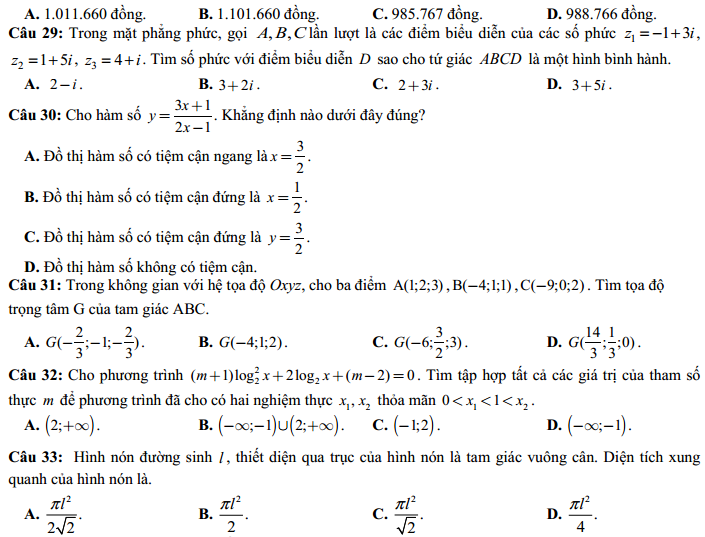 - Thi THPTQG 2019: Đề thi và đáp án môn Toán mã đề 124