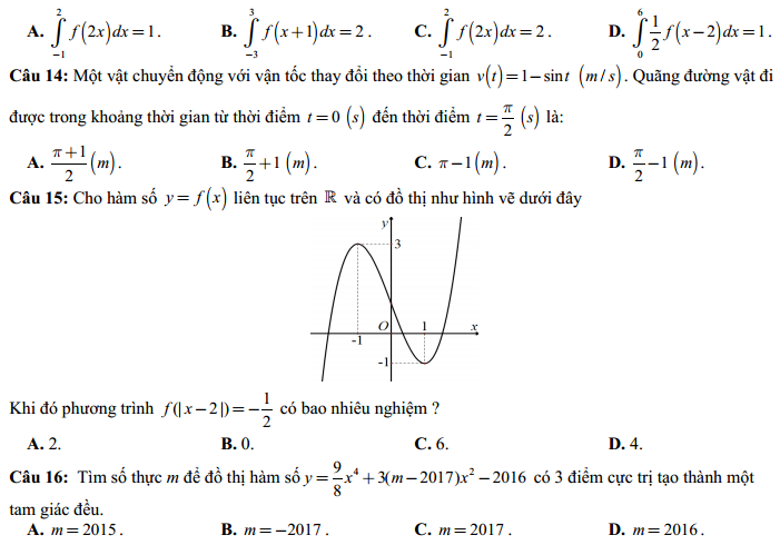 - Đề và đáp án môn Toán mã đề 120 thi THPT quốc gia năm 2017 đáp án của bộ GD-ĐT