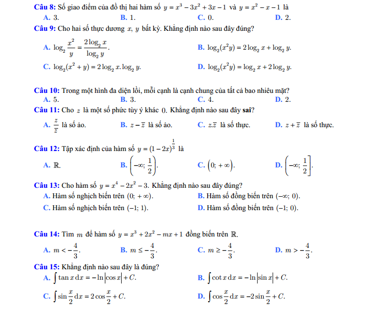 Câu 8: Số giao điểm của đồ thị hai hàm số