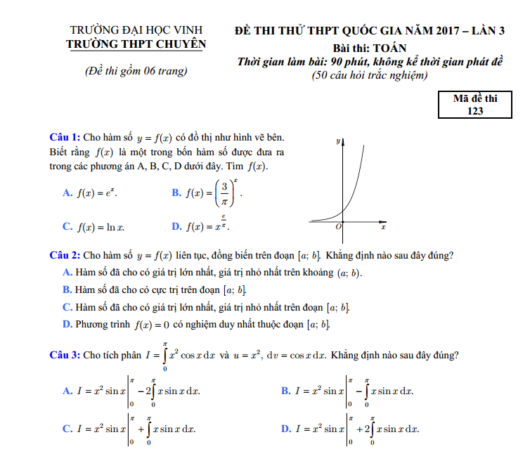 Đề thi thử THPT quốc gia môn toán năm 2017 của trường THPT chuyên- ĐH Vinh lần 3