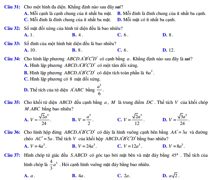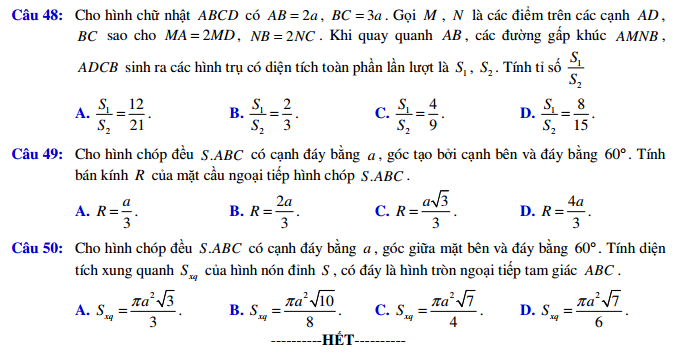 - Thi THPTQG 2020: Đề thi và đáp án môn Toán mã đề 115