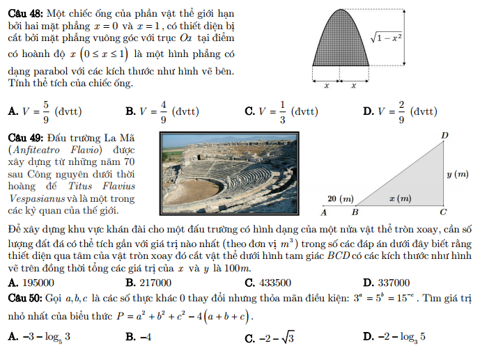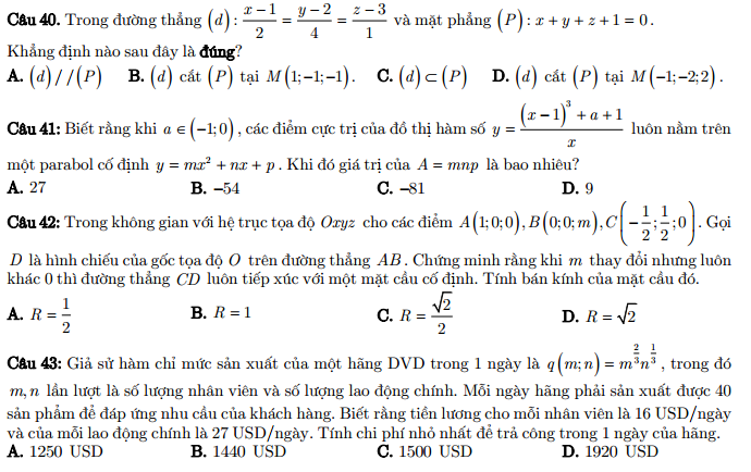 - Thi THPTQG 2020: Đề thi và đáp án môn Toán mã đề 101