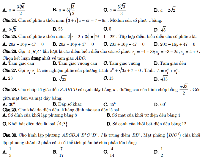 - Thi THPTQG 2020: Đề thi và đáp án môn Toán mã đề 117