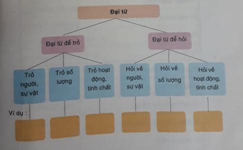 Đọc các sơ đồ dưới đây và tìm ví dụ thích hợp để điền vào ô trống: