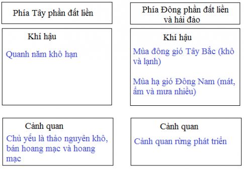 Đọc thông tin và dựa vào kiến thức đã học về mối quan hệ giữa khí hậu và thực vật, tìm những nội dung cần thiết để hoàn thành sơ đồ theo mẫu sau: