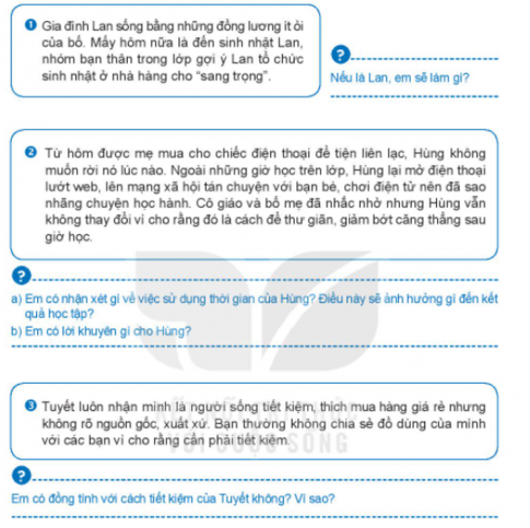 1. Nếu là Lan em sẽ từ chối các bạn, và nói các bạn gia đình mình còn khó khăn nên phải biết tiết kiệm không nên lãng phí tiền và những thứ chưa quan trọng được.