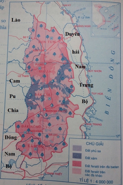 - Điền tên các nước, các vùng tiếp giáp với vùng Tây Nguyên.