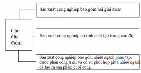 Dựa vào SGK, em hãy điền vào sơ đồ dưới đây các đặc điểm của sản xuất công nghiệp: