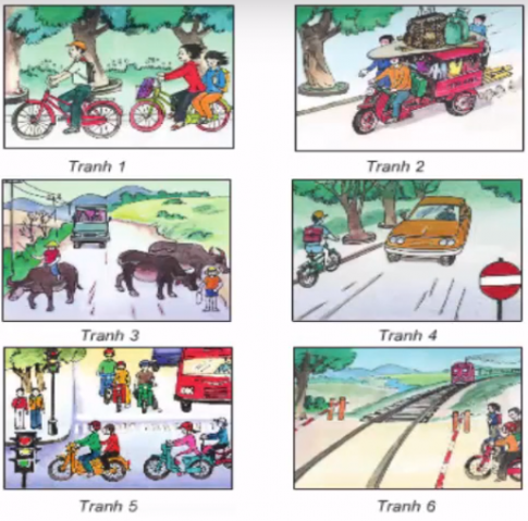 Câu 1: Những bức tranh nào dưới đây thể hiện việc đúng Luật Giao thông? Vì sao?