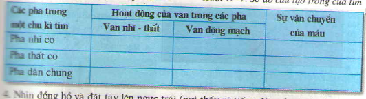 - Tim co dãn theo chu kì gồm 3 pha: pha nhĩ co (0,1s), pha thất co (0,3s) và pha dãn chung (0,4s)