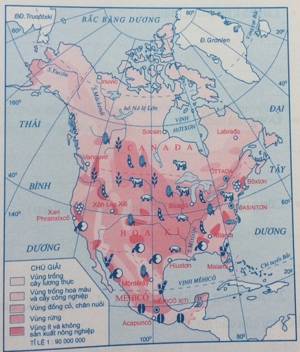 - Lúa mì: phía nam Ca-na-đa và phía bắc Hoa Kì