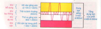 Hình 21-2. Đồ thị phản ánh sự thay đổi dung tích phổi khi hít vào - thở ra bình thường và gắng sức