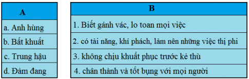 Chọn lời giải nghĩa ở cột B phù hơp với từ ngữ ở cột A.