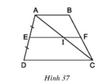 Cho hình thang ABCD (AB // CD), E là trung điểm của AD, F là trung điểm của BC. Đường thẳng EF cắt trung điểm của AD, F là trung điểm của BC. Đường thẳng EF cắt BD tại I, cắt AC ở K.