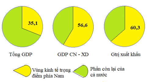 Vẽ biểu đồ thể hiện một số chỉ tiêu của vùng kinh tế trọng điểm phía nam so với cả nước năm 2002 (cả nước = 100%).