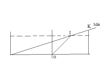Vẽ đường thẳng biểu diễn mặt nước sau khi đổ nước vào đáy bình. Vì tia ló ra ngoài không khí vẫn truyền theo phương cũ nên điểm tới chính là giao điểm của tia sáng từ mép của đáy bình đến mắt và mặt nước (điểm I)