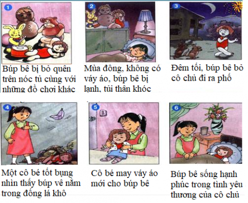 Thế rồi, ngay tối đó, cô bé hí húi cắt may cho búp bê một bộ váy áo rất đẹp. Rồi cô ôm cả búp bê đi ngủ
