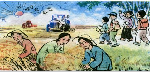 - Bác nông dân vẫy tay chào các em nhỏ