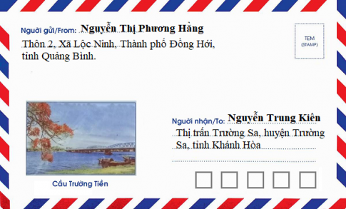- Góc bên phải (phía dưới) : Ghi họ và tên, địa chỉ của người nhận.
