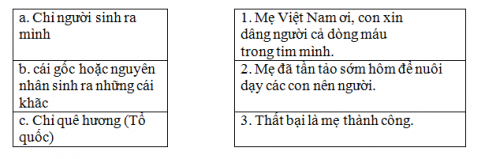 3. Nối các nghĩa của từ mẹ với các câu dùng từ mẹ theo nghĩa đó :