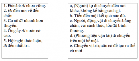 2. Tìm lời giải nghĩa (ở cột B) thích hợp với từ đi trong mỗỉ câu (ở cột A) dưới đây :