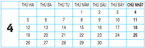 - Ngày 30 tháng 4 là ngày thứ mấy?