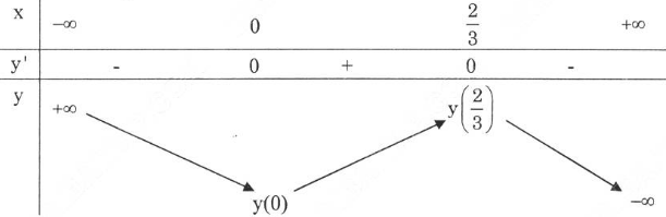 và nghịch biến trên khoảng $(-infty,0) \cup (\frac{2}{3},+\infty)$.
