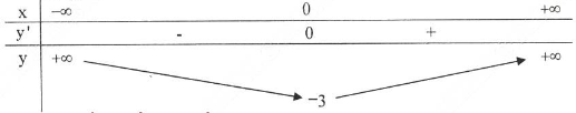 Hàm số đạt cực tiểu tại x=0 và đồ thị hàm số có điểm cực tiểu là (0,-3).