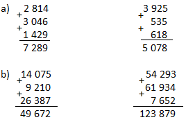 b) 26387 + 14075 + 9210