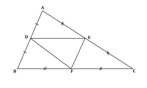 Cho tam giác ABC, các điểm D, E, F lần lượt là trung điểm của AB, AC và BC.