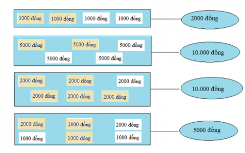 Phải lấy các tờ giấy bạc nào để được số tiền bên phải?