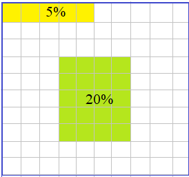 b. Hãy tô màu vàng vào 5% số ô vuông, tô màu xanh vào 20% số ô vuông của hình bên