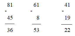 a. 81 - 45 b. 61 - 8 c. 41 - 19